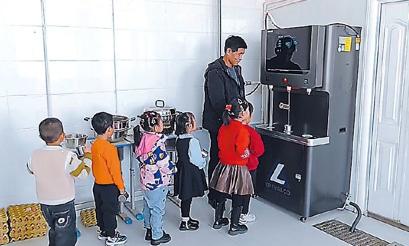 本网讯 “水来了,水来了!”在甘肃省靖远县若笠乡富民小学,学生们欢呼着来到新安装的饮水机前排队接水。近日,兰州铝业为若笠乡富民小学和富民幼儿园安装了3台总价值4.5万元的集加热和净水功能于一体的直饮水机,有效改善了师生饮水条件。