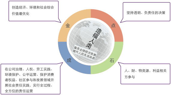 “点石成金,造福人类”社会责任观为可信的责任理念在公司得到普遍认同,公司员工将其当作不断进步的目标和追求,并通过自己的努力不断地创新和实践,推动公司和社会的可持续发展进程。