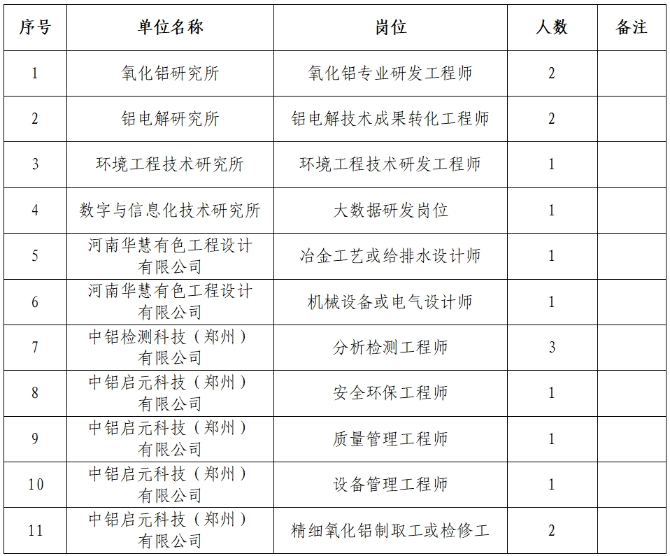 招聘岗位见下表,具体岗位职责及任职资格条件请扫描文后二维码下载附表1《金年会金字招牌郑州有色金属研究院有限公司公开招聘岗位一览表》。